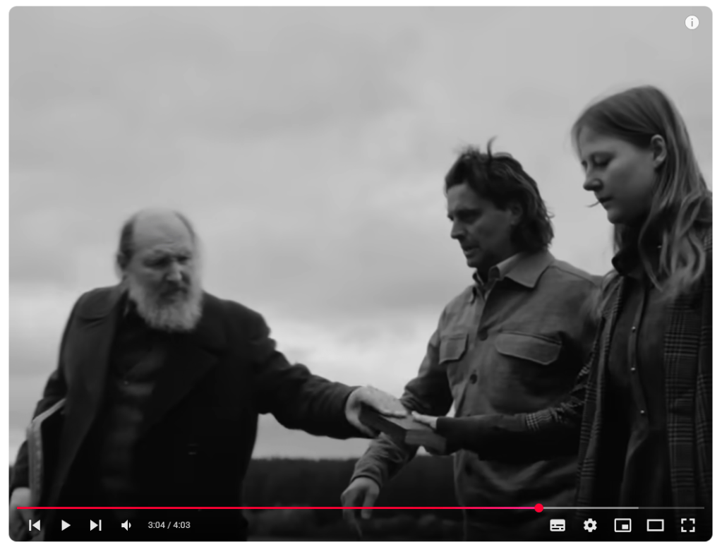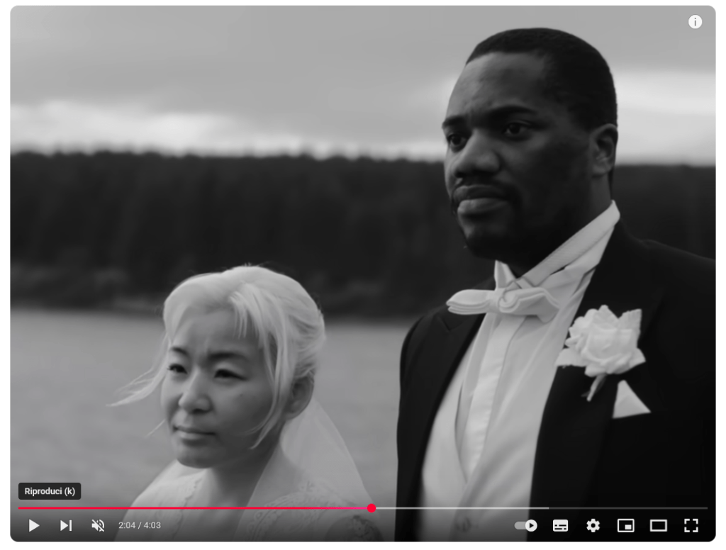 L’uomo e la donna arrivano ai piedi di un lago e si mettono in coda dietro a delle altre coppie. Il tutto ricorda l’attesa del concessione di un sacramento, o l’entrata in uno spazio determinato da una soglia d’ingresso. L’uomo si gira verso la donna, forse per implorare un ultima via d’uscita, ma la donna non lo guarda, anzi: Incrocia le braccia e continua a guardare nel senso opposto. E’ proprio stufa dei suoi silenzi e l’uomo lo capisce benissimo, abbassando il suo sguardo come una persona che si sente decisamente in colpa.