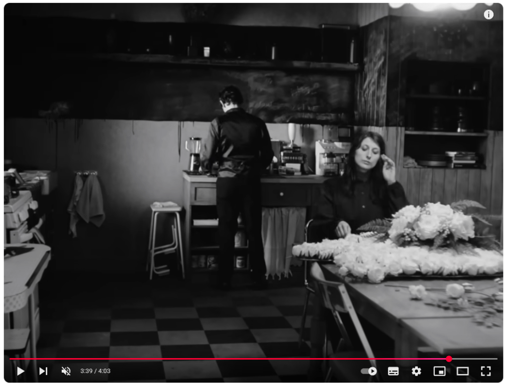La prima cosa che vediamo è la bellissima composizione floreale funebre a forma di ali che abbiamo già visto nella copertina di “Memento mori” e nel video di “Ghosts again”, piena di stupende rose bianche.