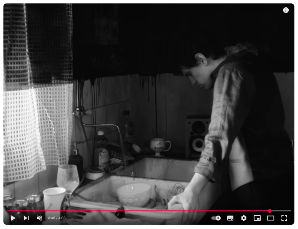 L’uomo mette su un disco e continua a guardare il lavello che si riempie d’acqua come prima, in cerca di una risposta, ma ora capisce che esiste un modo in cui entrambi possano lavorare sulla musica comunicando l’uno con l’altro: